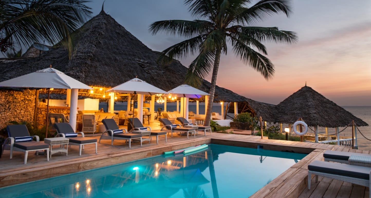 Expansive ocean views and balmy sunsets invite you to lose yourself in complete tranquility. Located on the very edge of the Unguja Island where the Indian Ocean reaches the shore, Chuini Zanzibar Beach Lodge is the most voguish property to grace Zanzibar’s west coast and the embodiment of a utopian beach escape. The lodge is set on the west coast of Zanzibar, seven miles north of Stone Town, and its bungalows are spread out over a four acre area, allowing for excellent privacy. Palm trees embellish the grounds and magnificent, panoramic sea views can be soaked in from each unit – a taste of perfection. Chuini Zanzibar Beach Lodge comprises twelve bungalows and one villa. Each of these “open-to-nature” thatched units displays crisp white walls and linen, contemporary beach-style décor and natural wooden elements which, collectively, evoke a sense of calm. No island destination would be complete without swimming pool waters that match the hue of the surrounding ocean. Chuini boasts two such pools – one on the main deck, next to Chuini Restaurant and the other at Chuini Spa. Both provide you with the opportunity to absorb spectacular views while relaxing on the….