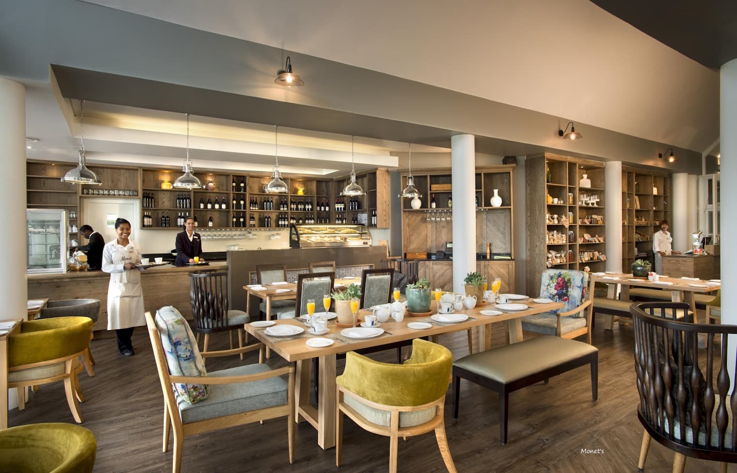 Monet's restaurant and deli offers a café bistro atmosphere overlooking the rolling greens of the Outeniqua golf course with the beautiful Outeniqua Mountains as a backdrop, whilst The Club Lounge is the destination of choice for golfers on a break looking to indulge in some American club style food. Fondly referred to as the 19th hole, the Club Lounge overlooks the 18th green of the Montagu golf course and has become the customary end point after a good game.