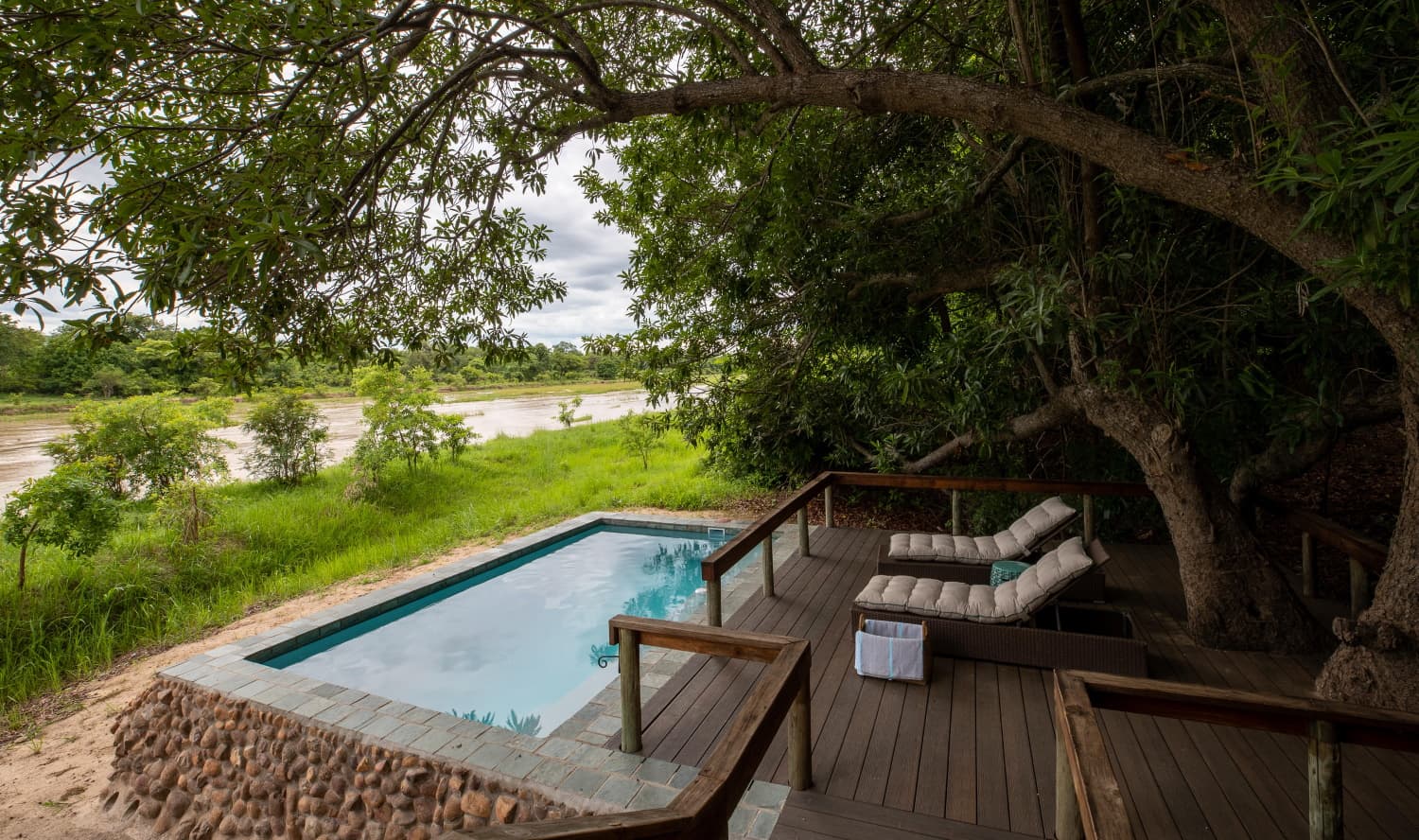 - En-suite bathrooms have a double-sized sunken stone bath and twin showers and are open-fronted - unwind in a hot tub overlooking the Kapamba River