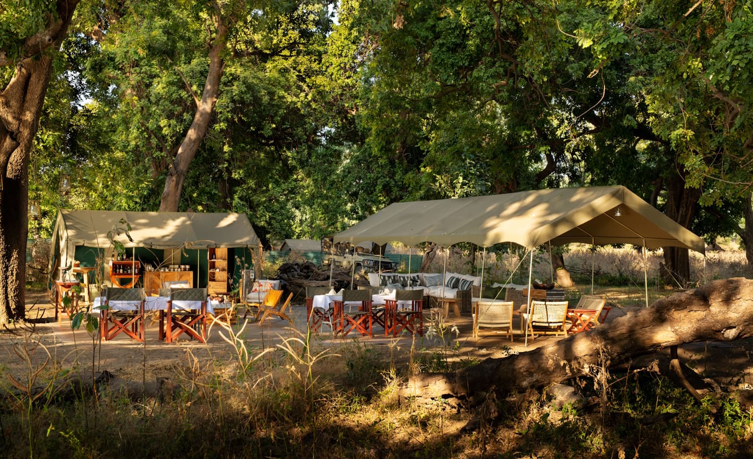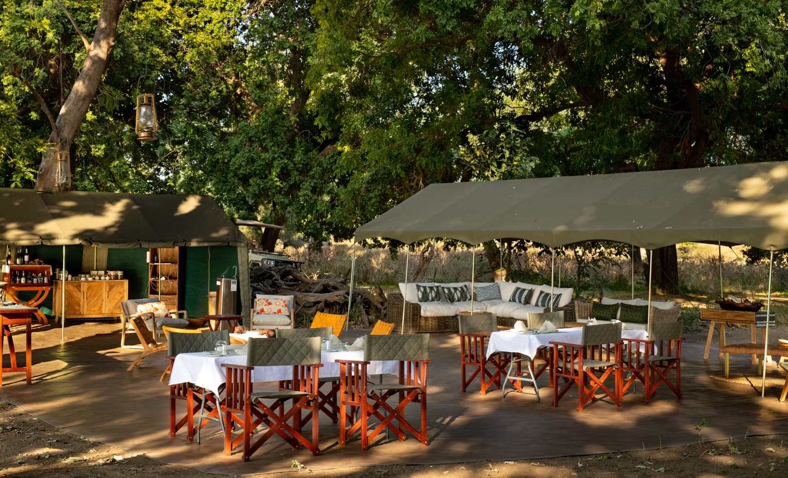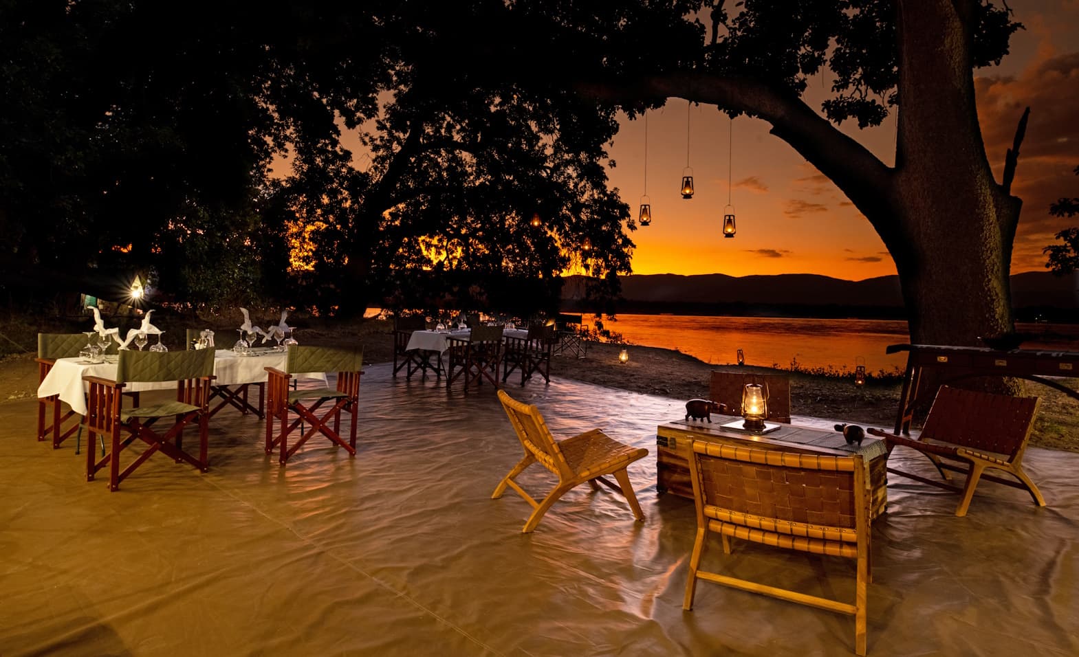 Located in Mana Pools National Park, Mana River Camp is positioned on the banks of the mighty Zambezi River nestled between this enormous perennial river and a much visited water pan, particularly enjoyed by elephants for mud bathing. Shade in the camp is provided by riverine forest predominately Trichilia Emetica and the fabled Faidherbia Albida (apple ring or Anna Tree). The beauty of this camp is that it is a mobile tented camp known as a TEC – Temporary Extended Camp. The whole camp is taken down at the end of each season, before the wet season begins. This gives the feeling of the old, real bush, camping experience. The camp is unfenced and many different animals may be viewed from the camp, whilst enjoying the tranquil atmosphere. Common visitors into camp are elephants. There are just six tents in camp. Each tent is a 3-module Sahara lodge, canvas and gauze tent, with zipped entrances. The tents all have a view of the Zambezi River, and comprises of a veranda, with a folding chair. The sleeping area has twin single beds which can be converted to king-size on request, hotel quality linen and towels, and bedside tables. There is a table with a……