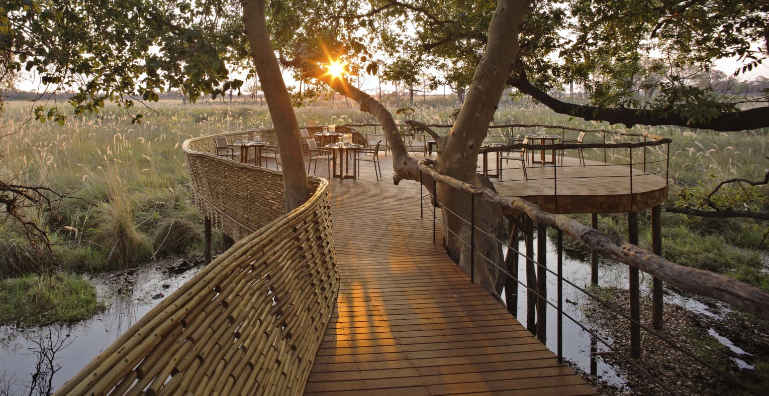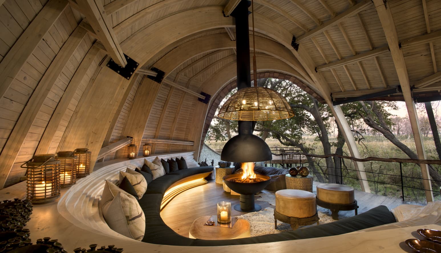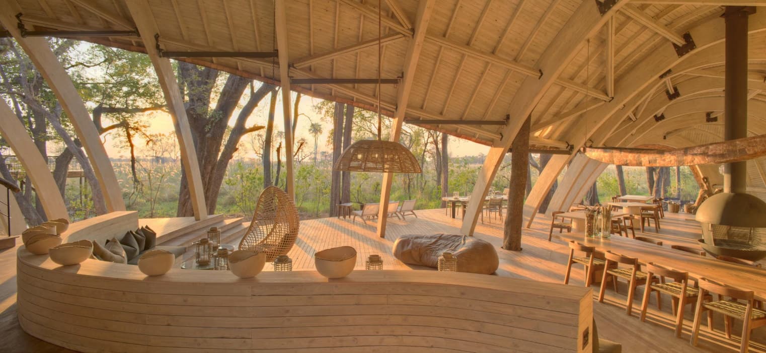 elegant and intimate suites are raised above the papyrus like the nests of golden weaver birds and feature magnificent Delta views, as well as private plunge pools, cozy fireplaces and secluded nooks. Interiors celebrate Botswana craft with pieces that include copper-clad mekoro, basketware and sculpted wooden tables.