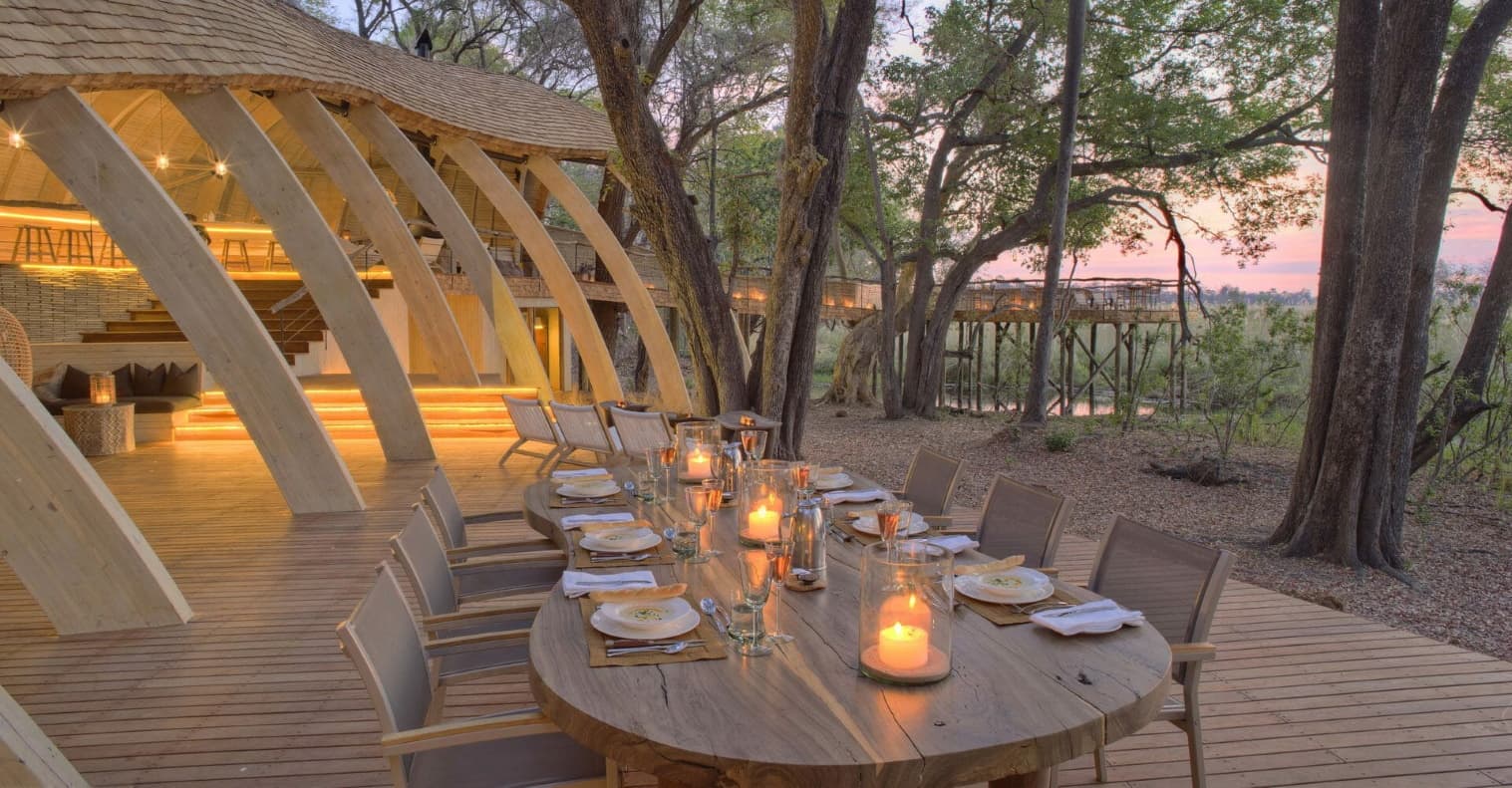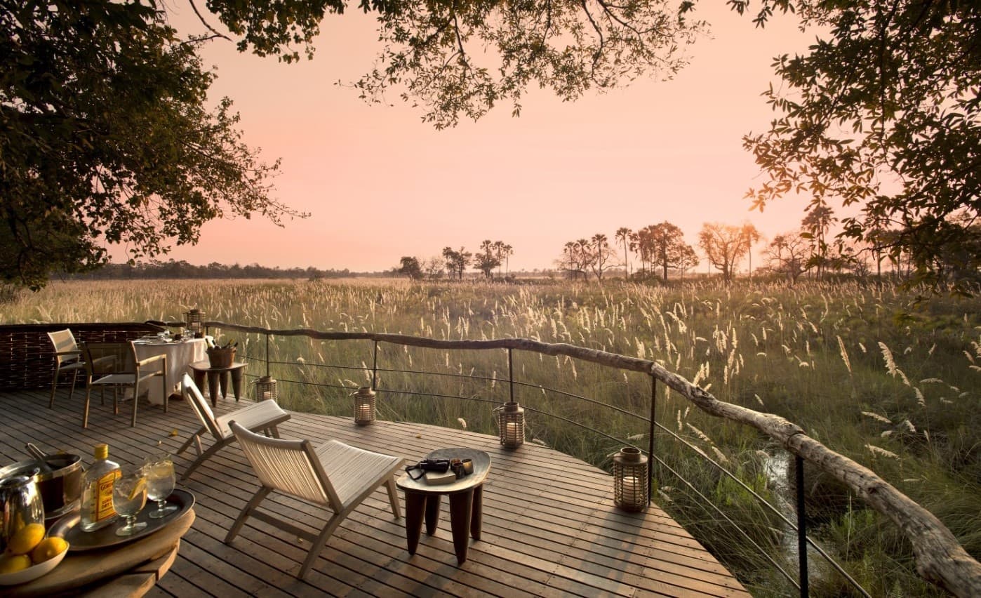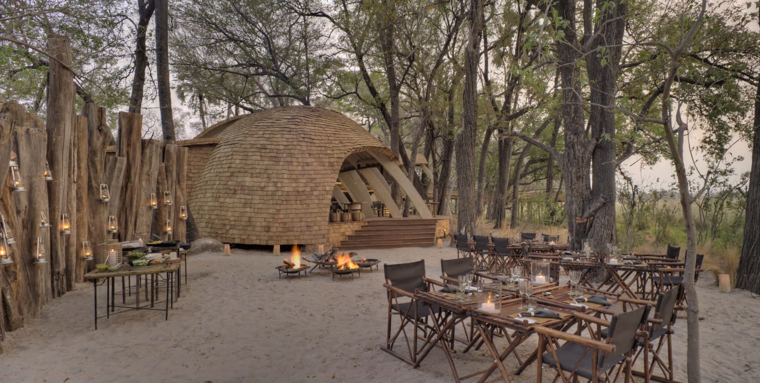 elegant and intimate suites are raised above the papyrus like the nests of golden weaver birds and feature magnificent Delta views, as well as private plunge pools, cozy fireplaces and secluded nooks. Interiors celebrate Botswana craft with pieces that include copper-clad mekoro, basketware and sculpted wooden tables.