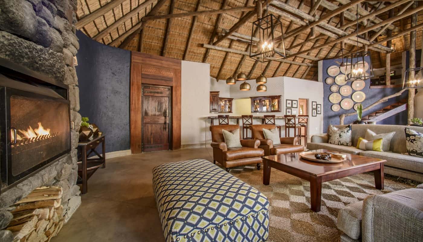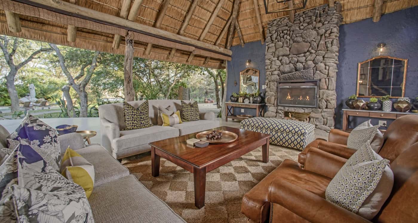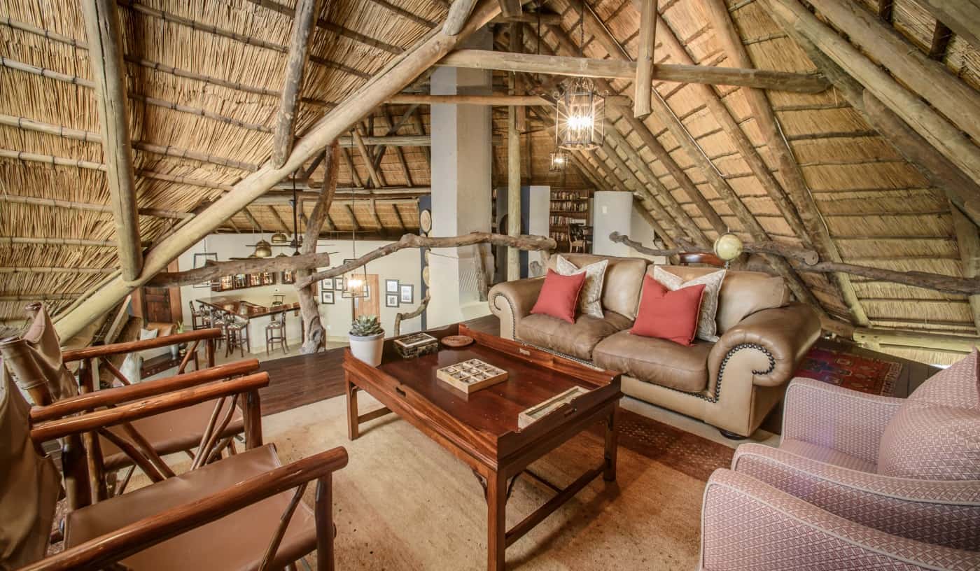 Lastly, there’s the Savanna Suite - an opulent home away from home under thatch. Two large, beautifully furnished bedrooms lie on either side of an inter-connecting lounge. Each has a spacious bathroom with free-standing bath, double vanities, double shower and toilet. The bathrooms open onto paved outdoor showers. The bedrooms have glass doors with screens leading out onto covered patios, plunge pool and wooden viewing deck. From here you can enjoy views of a private waterhole and the beauty of the African bush. The lounge is a harmonious meld of elegance and comfort with sofas grouped around a television and DVD center, and a cozy reading nook in front of the fireplace. Step through sliding glass doors onto a large covered patio where candle-lit dinners or private pre-dinner cocktails can be enjoyed. An attached fully equipped kitchen and guest restroom complete the impression of being in one's own exquisite home. A butler in attendance at dinner and a private game viewing vehicle with dedicated ranger and tracker to take care of all your needs completes the Savanna Suite.