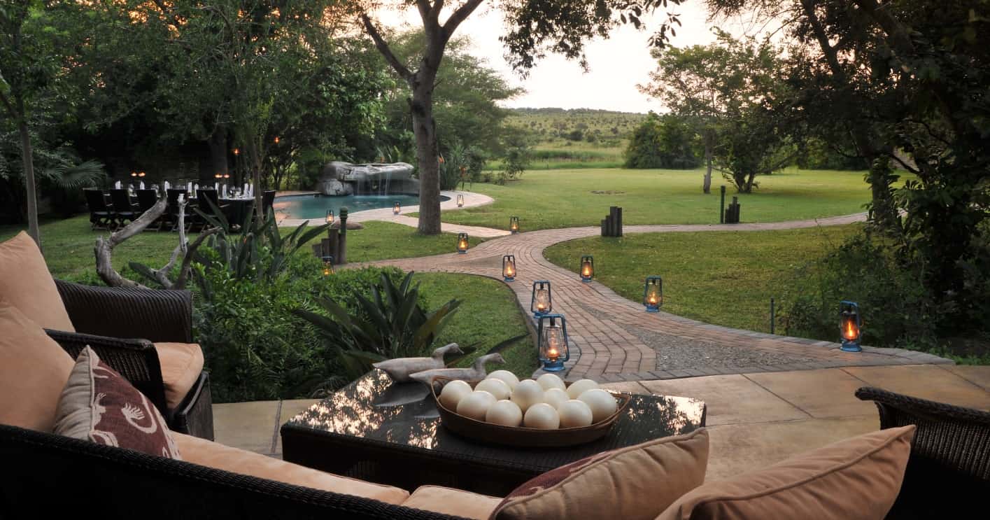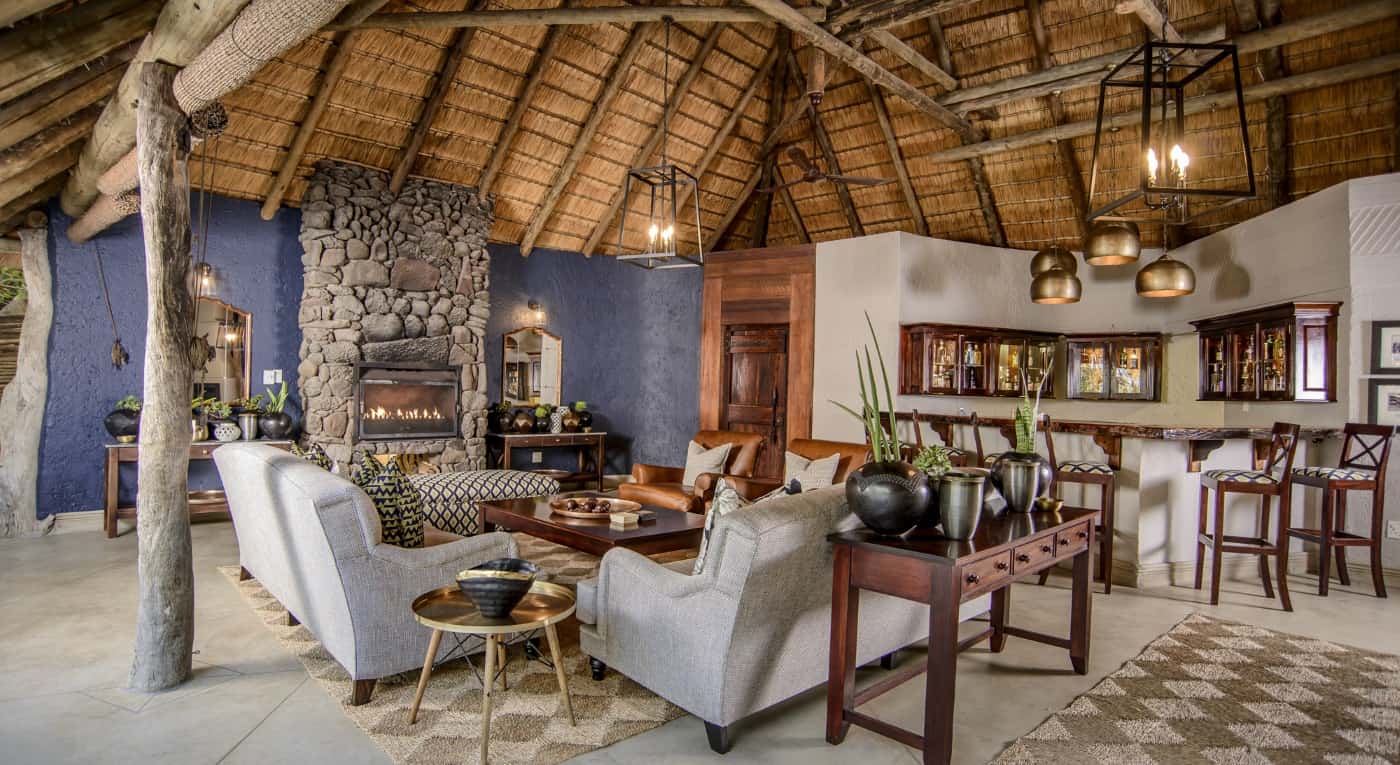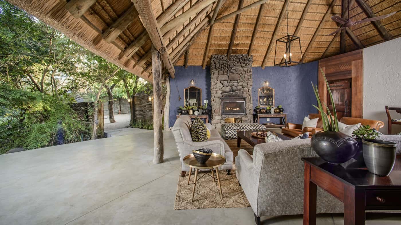 nestled amid beautiful indigenous trees that attract a variety of birds. They have the same facilities as the larger suites in a more compact space and are furnished and decorated to the same superb standard. The bedrooms have draped ceilings creating an atmosphere of romance and intimacy. Tented roofs blend into the African bush while solid walls provide quiet and security, ensuring a restful night's sleep. Each Luxury Suite has an en-suite bathroom with free-standing bath, double vanities and both indoor and outdoor shower. The bedrooms open onto private patios with deck and private plunge pools. Sweeping views of the bush and waterholes can be enjoyed from the comfort of your deck chair. Tucked away with large stands of natural shrubbery separating them, the luxury suites are the ultimate in cozy, private hideaways.