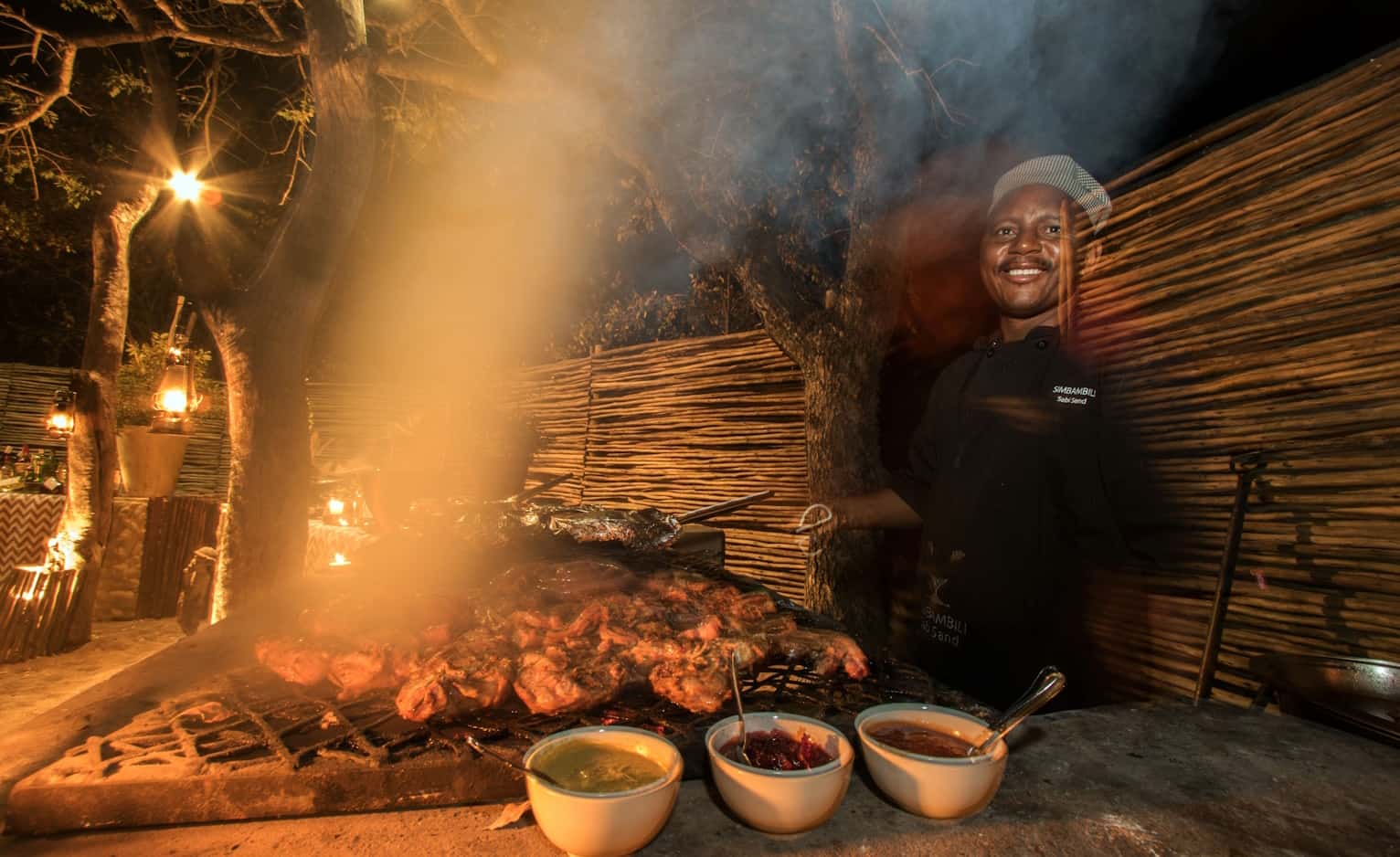 Typically the day starts as dawn breaks over the African bushveld. After an early morning wake-up call, coffee, tea and rusks are served on the main deck. Shortly after, depart in an open Land Rover with experienced Rangers and Trackers who will share their extensive knowledge of the bush. After a sumptuous breakfast is served either back at the camp or in the riverbed or bush, you have the opportunity of guided walks which are accompanied by an armed ranger and tracker. Alternatively, between game drives you might decide to spend lazy afternoons alongside your private pool overlooking the river, or reading in the library, or selecting a prize African gift in the curio shop. If you want some pampering you can make use of the spa offering the latest beauty treatments with a range of luxuriant products and the added novelty of massages with a view over the rolling plains. The afternoon game drive is preceded by high tea and extends into the evening to view seldom seen nocturnal species by torchlight. Upon returning for a gourmet three course dinner, either in the boma, bush or lodge - you can socialize with a cognac, single malt or cigar around the campfire or lounge before returning to bed for another day's adventure.